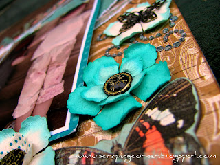 Mellisa never ceases to amaze me with her fantastic eye for detail and flare for style. She did this fascinating layout on canvas! Leave it to Mellisa to put multiple photos on a single photo sketch - I'm in awe how she makes (or anyone for that matter) multiple photos work on a page. Mellisa decided to play up the blue and browns of the Gabrielle line - where I chose the peach. You can see more details on Mellisa's blog here.